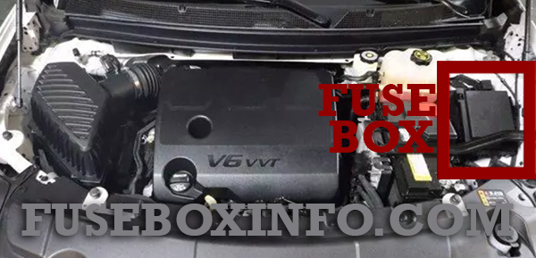 The rear compartment fuse box is in the cargo area, on the driver side of the vehicle behind the lower trim panel.
